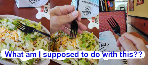 Maybe all Moe’s restaurants don’t use these, I don’t know. Maybe it’s only my local place that is too lazy to wash and use metal forks. Leave a comment down below if you get a chance and let me know what your experience has been.